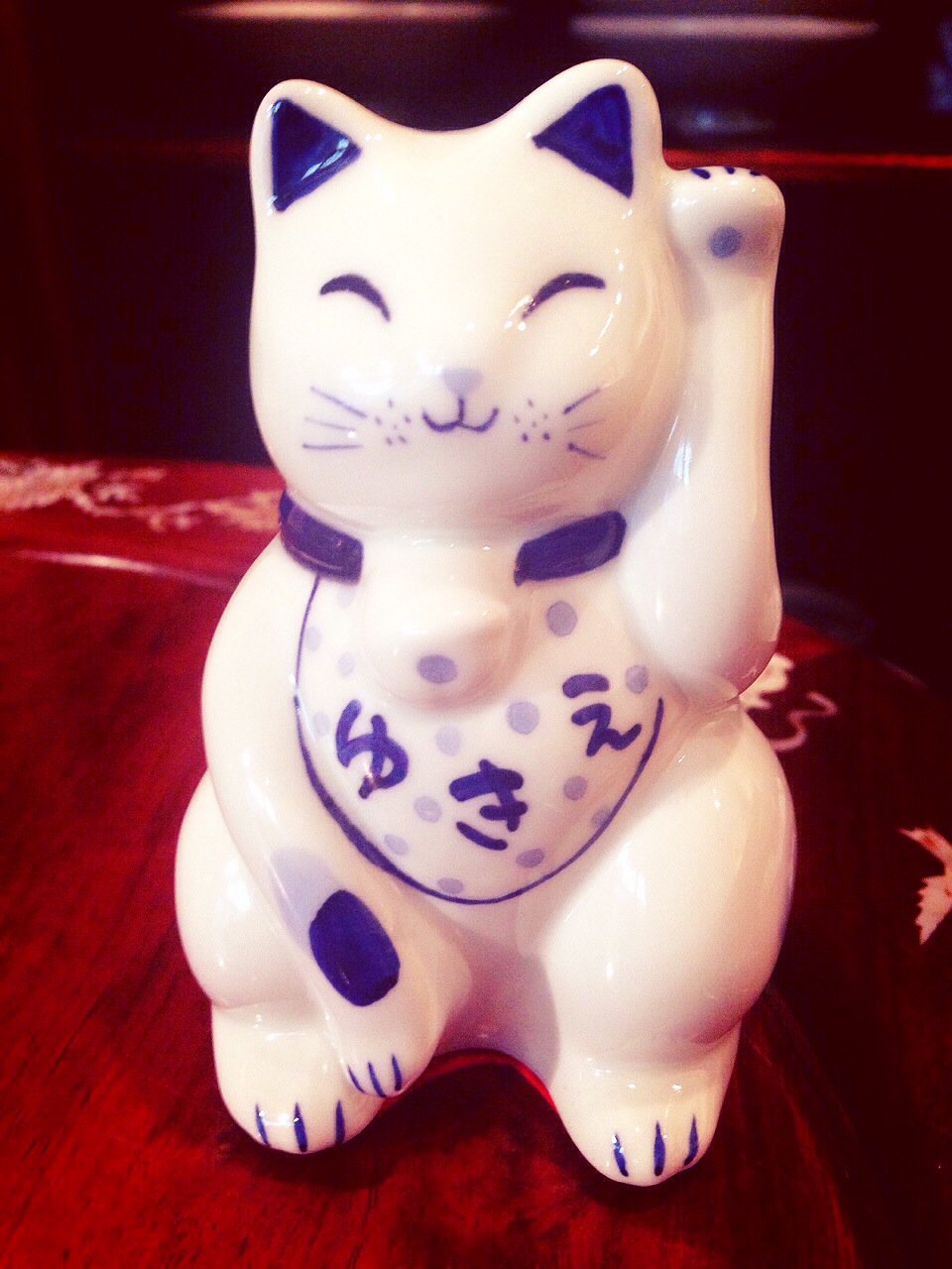つい最近、お客さまのリクエストで 「しあわせ招きねこ」 に名前入りがお目見えしました
