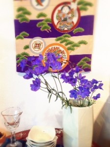 節句柄の古布 に デルフィニウム
