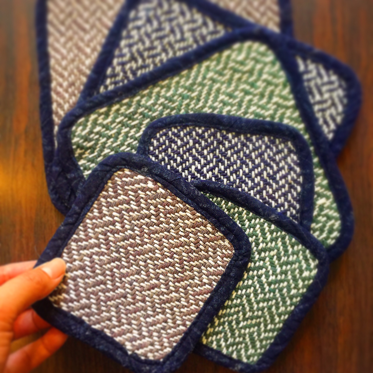 今回は初めて、織り機で織ったものをコースターに使ってくださっていて